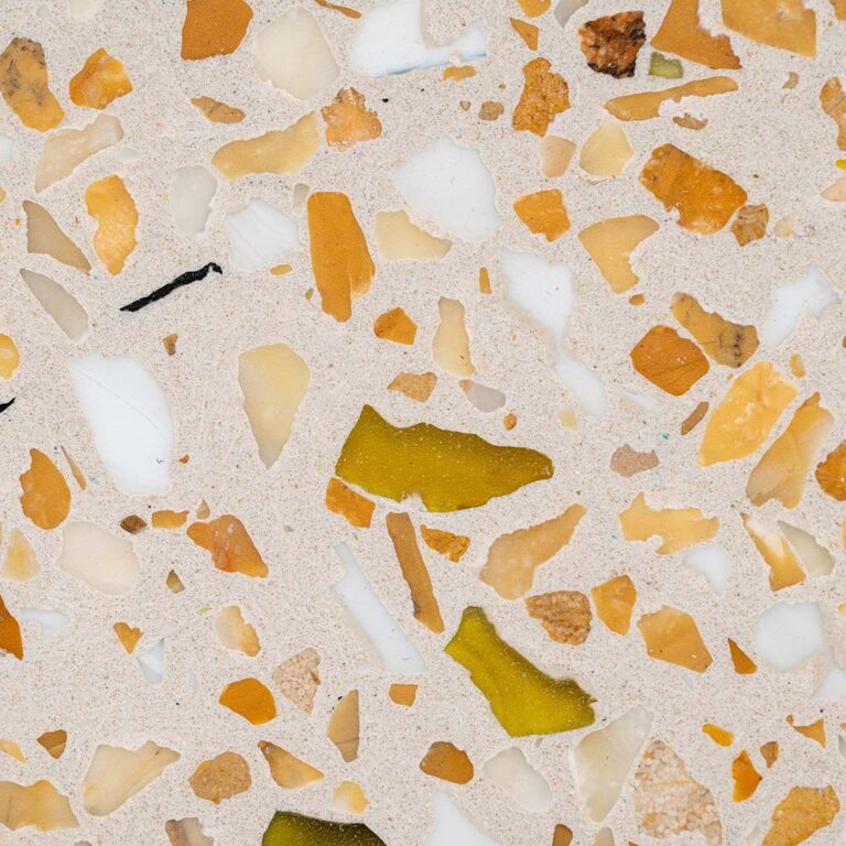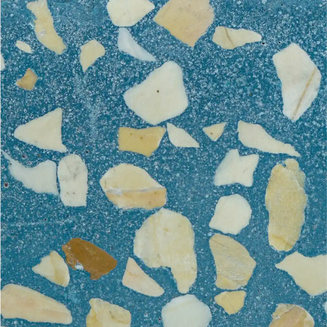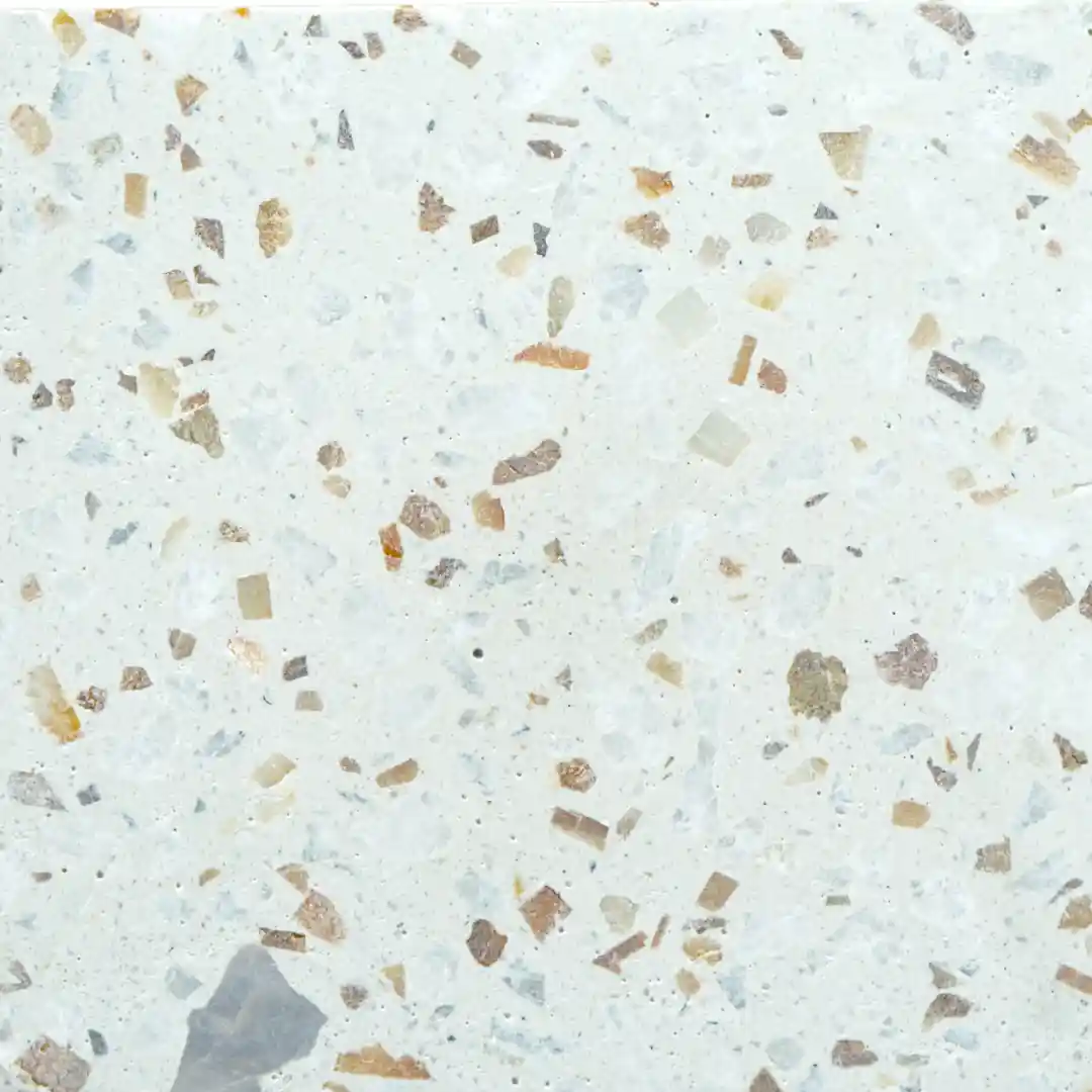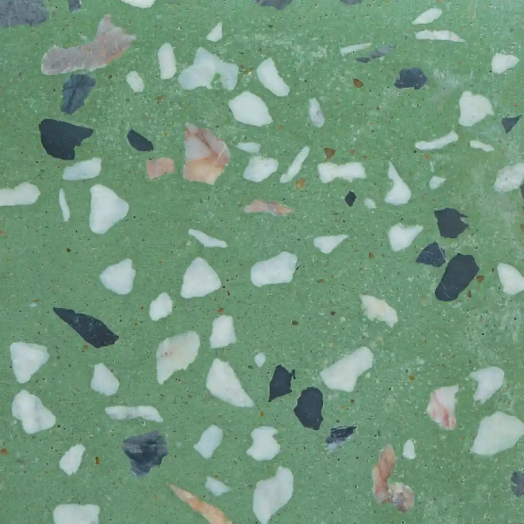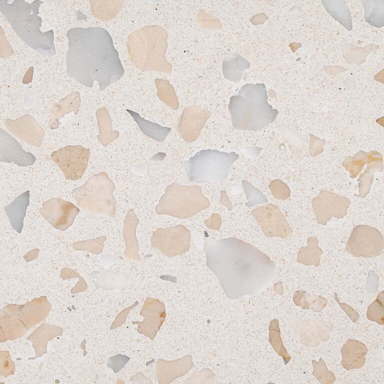 Nuestro terrazzo incorpora una capa protectora en la superficie. Las imágenes son orientativas y el resultado final puede variar ligeramente por las características naturales de los materiales.