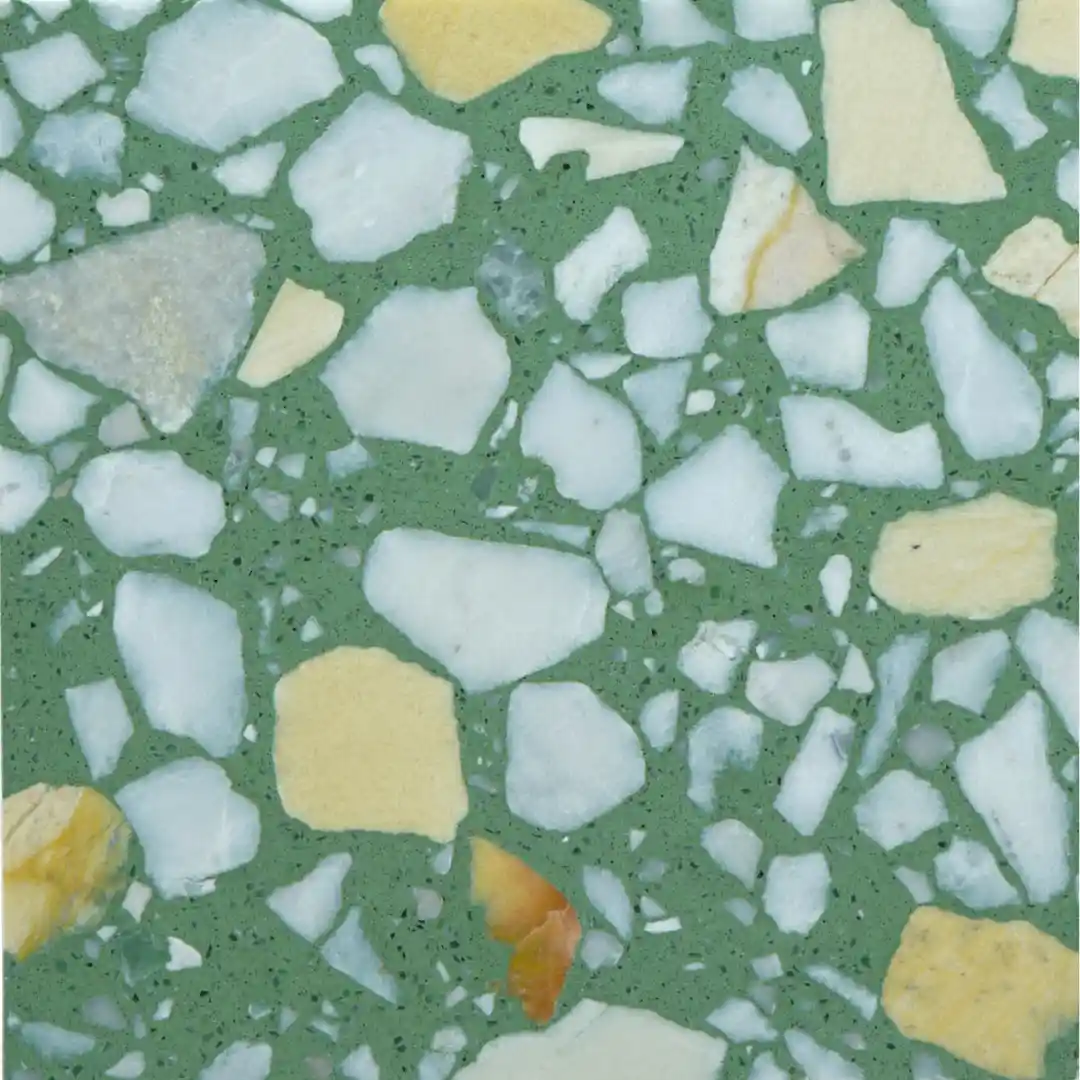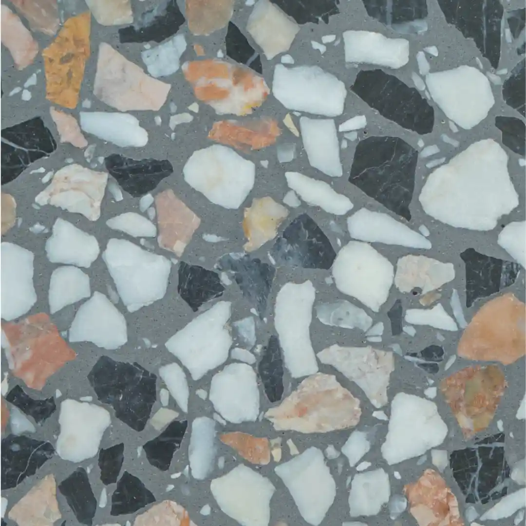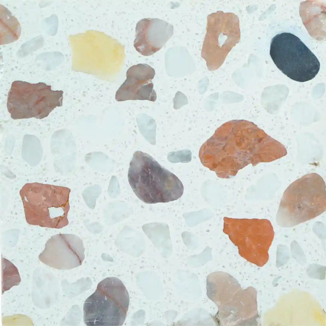 Todos los modelos de baldosas Terrazzo pueden personalizarse en color de fondo y tipo de agregado según las preferencias del cliente.