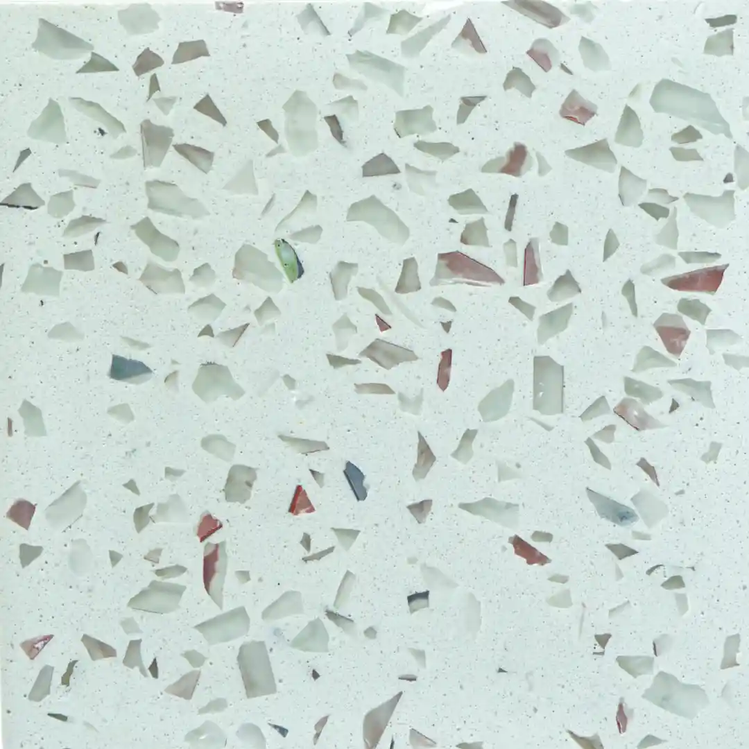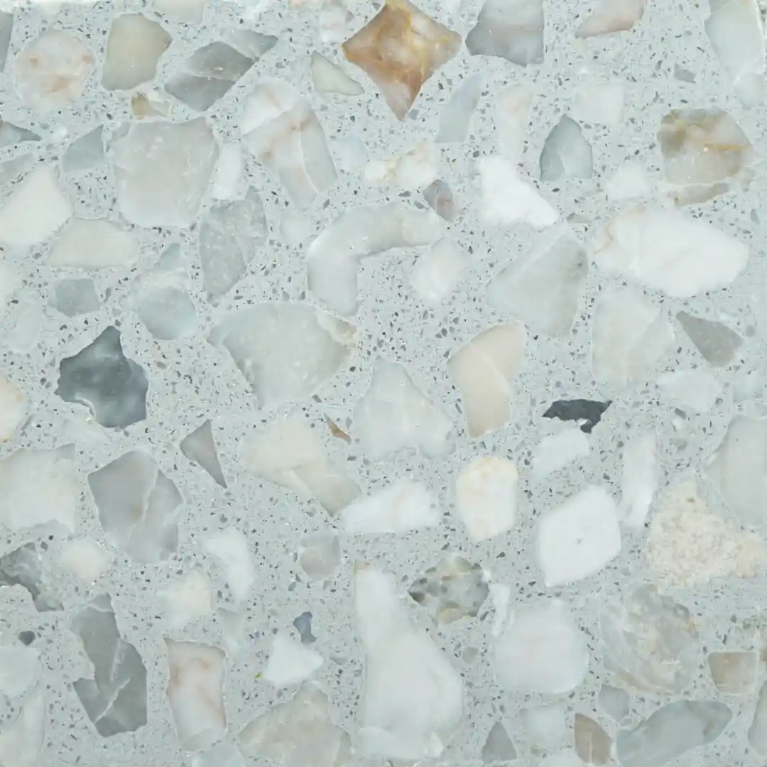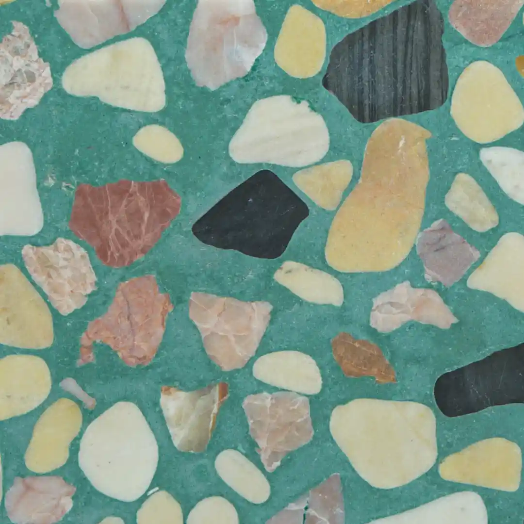 Todos los modelos de baldosas Terrazzo pueden personalizarse en color de fondo y tipo de agregado según las preferencias del cliente.