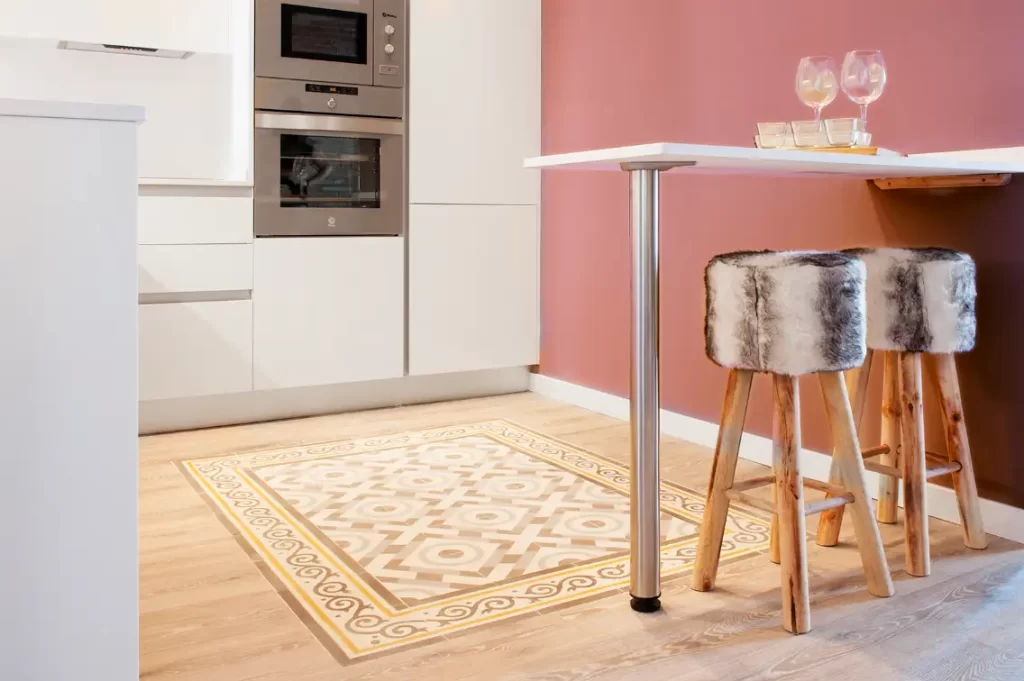 • “Tile rugs o catifes de rajoles: zones definides de patró al voltant de l'illa de cuina o menjadors informals, creant àrees amb caràcter sense sobrecarregar visualment.